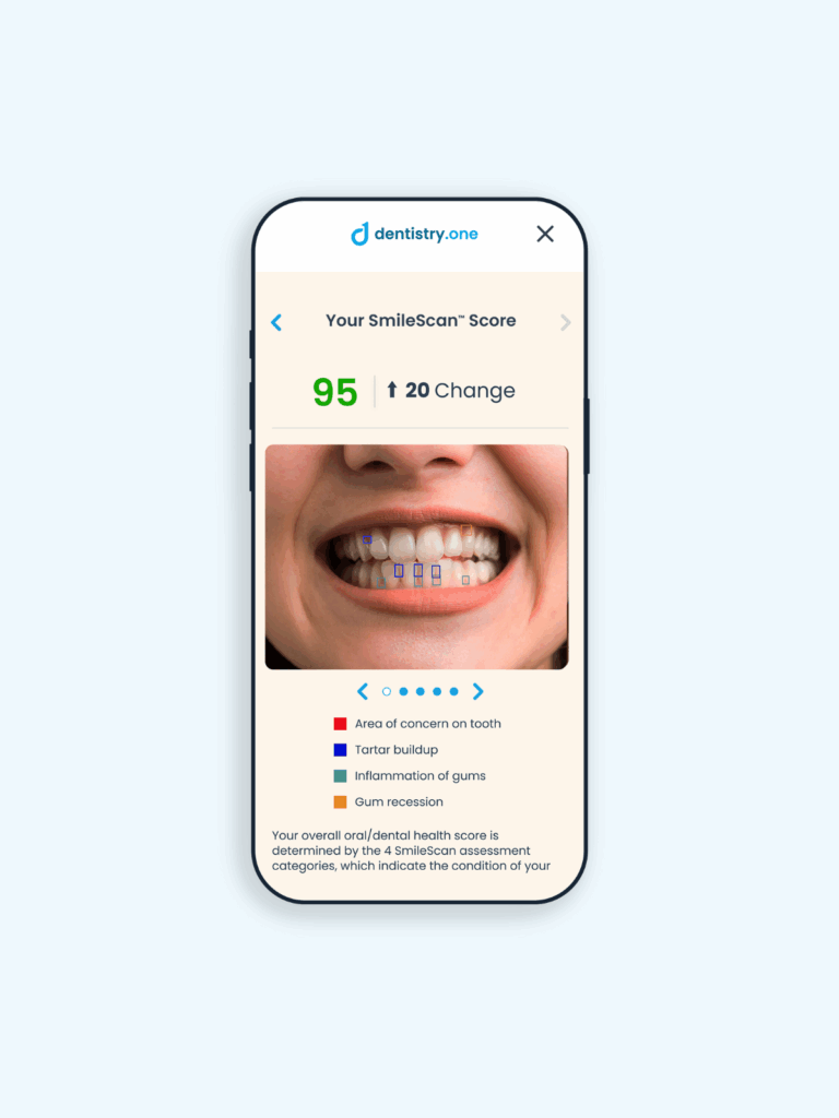 Take a few photos of your mouth and SmileScan™ will highlight concerns like plaque, tartar, inflamed gums, crowded teeth, and more.